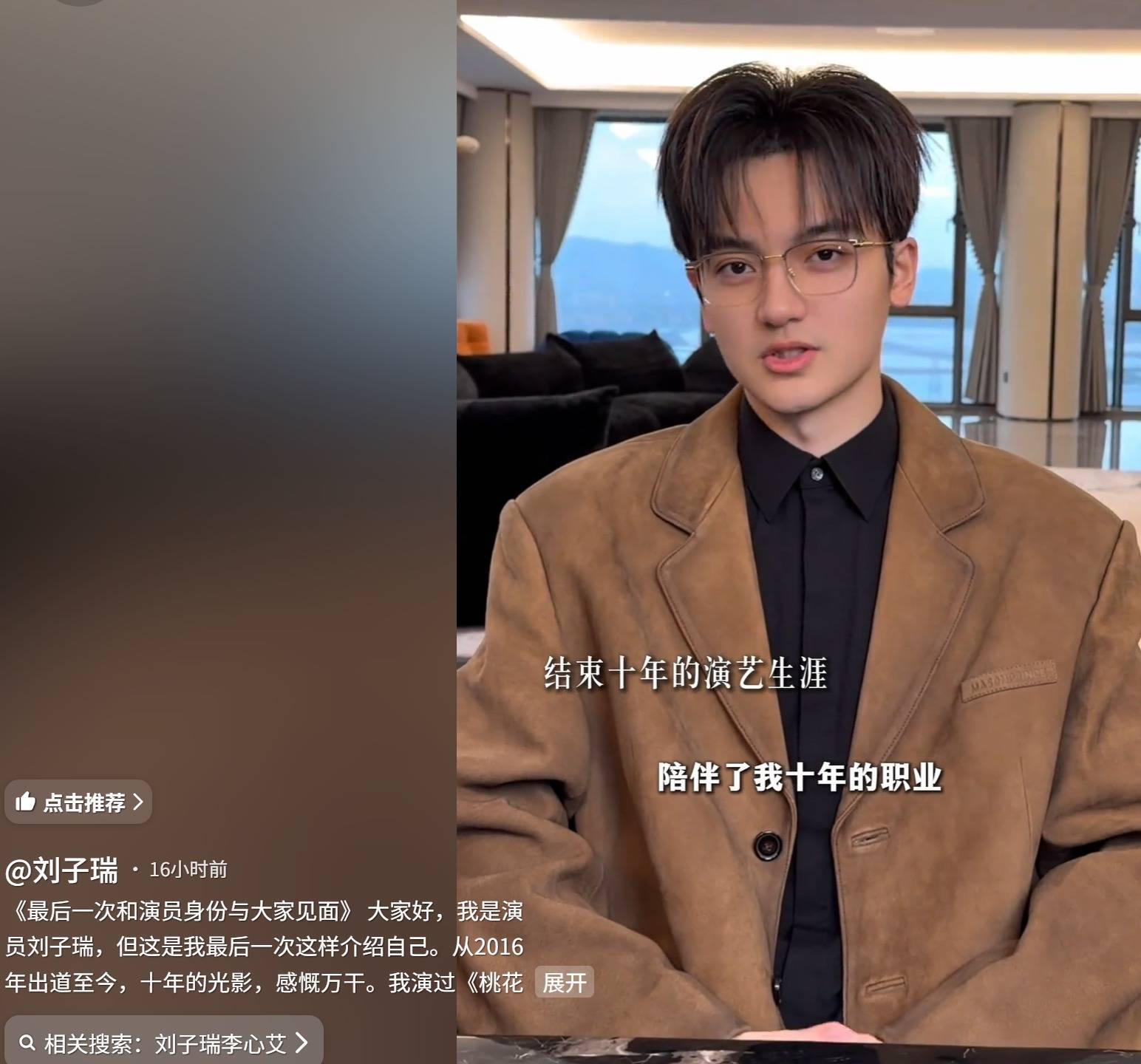 然而,27岁的演员刘子瑞却在这岁末年初之际,直接宣布退圈!